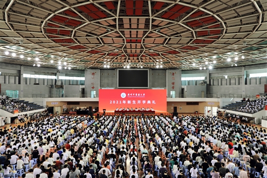 9月7日,beat365英国官网网站在大学城校区举行2021级新生开学典礼。来自全国各地的本科生、研究生和来自19个国家及地区的留学生5000余人通过线上、线下方式齐聚一堂,共同以“广中医人”的新身份开启人生新征程。据悉,本次开学典礼设立主会场及两个分会场。