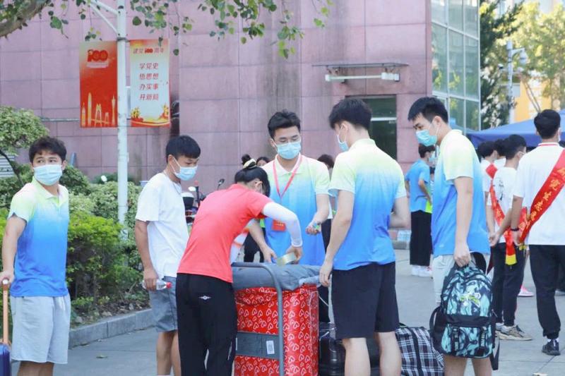 广东工业大学组织3700余名党员、志愿者、迎新使者等,协助学校开展迎新工作,对到校新生进行体温测量、查验健康码等,并帮助他们搬运行李、报到注册,提供贴心周到的服务。