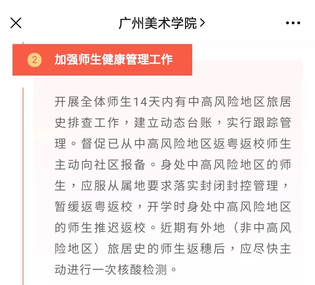 广州城市理工学院:目前仍处于中高风险地区和其他涉疫情区域的学生暂不返校。