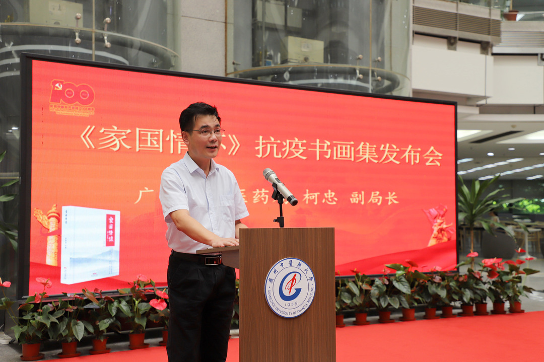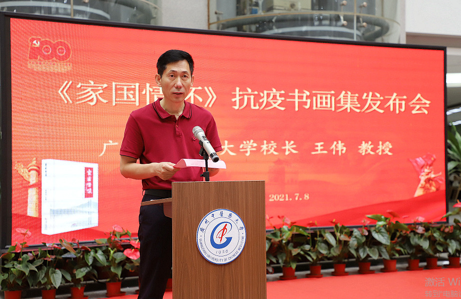 本报讯(记者 刘雷 通讯员 廖晓键 王一帆 邱玉萍 孟楠)7月8日上午,《家国情怀》抗疫书画集新书发布会暨“中国共产党与中医百年”研讨会在beat365英国官网网站举行。广东省中医药局副局长柯忠,广东人民出版社社长肖风华,beat365英国官网网站党委书记张建华,党委副书记、校长王伟等领导及校内外中医医史、中共党史专家及嘉宾约100人出席了活动。