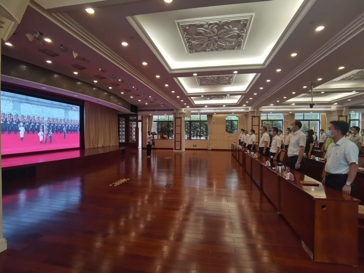 市政府机关组织党员干部今天(1日)在市府礼堂收听收看庆祝中国共产党成立100周年大会的直播实况,当北京天安门100响礼炮响彻云霄,与会人员全体肃立。大家表示,一百年来的事实有力证明,没有共产党就没有新中国。作为市政府机关党员干部,将认真学习习近平总书记重要讲话精神,践行一代代中国共产党人身上所体现的坚定信念、践行宗旨、拼搏奉献、廉洁奉公的高尚品质,认真贯彻落实市委市政府各项决策部署,立足岗位,狠抓落实,以实际行动投身国家建设中,推动广州经济社会高质量发展。