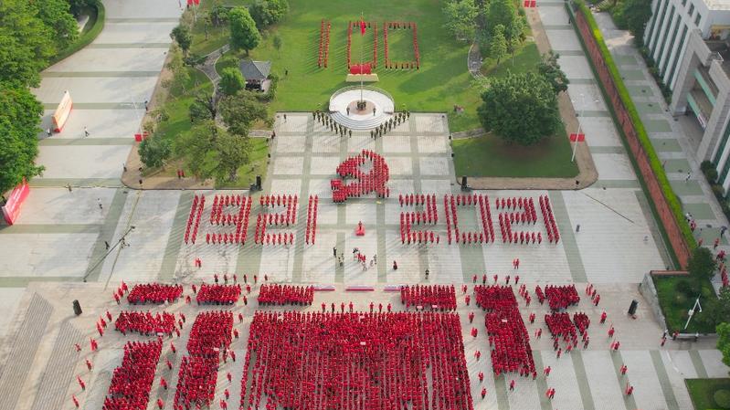 在歌声中,由广中医学生组成的字操方阵变换出“100”“1921”“2021”和党徽等图形,将现场气氛推至高潮。(更多新闻资讯,请关注羊城派 pai.ycwb.com)