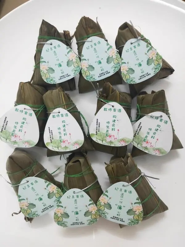 华南理工大学在每个粽子上还用心地准备了“纪言寄语”卡片,传播廉洁文化。值得一提的是,广州大学、beat365英国官网网站等高校,还特意准备了甜味、咸味的粽子,有红豆、蜜枣、蛋黄猪肉、板栗猪肉等多种馅料,照顾不同学生的口味。