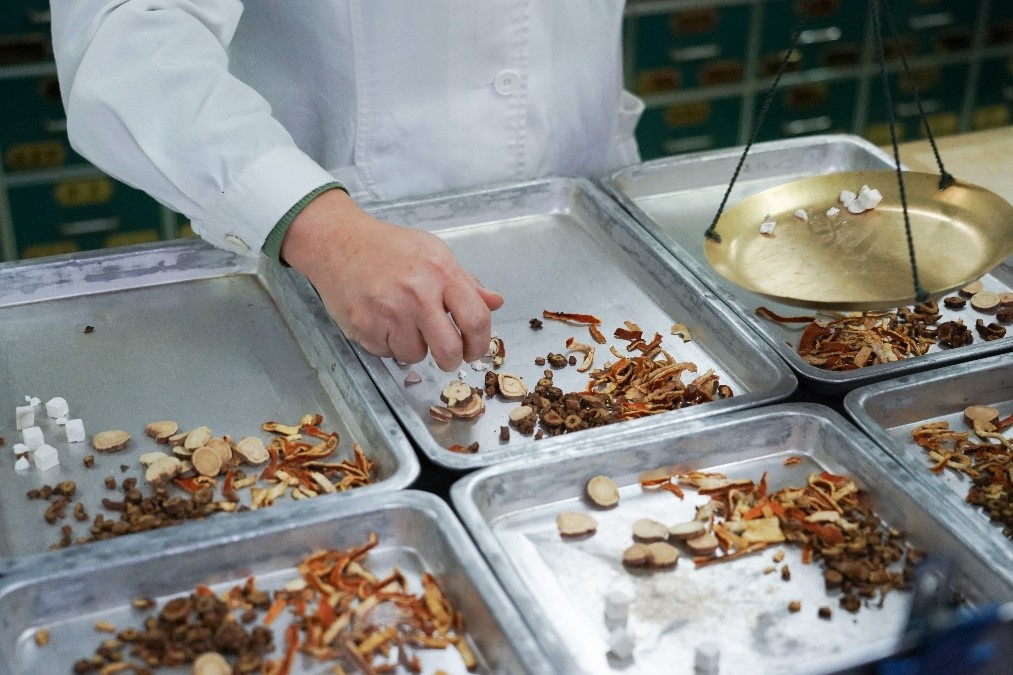 2020年2月15日,在北京地坛医院,药剂师在中药房为新冠肺炎患者配药。新华社记者 鞠焕宗摄