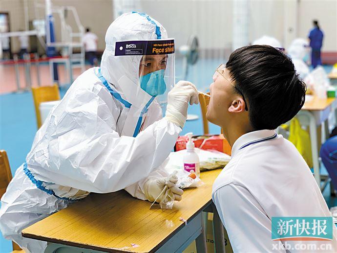 在师生们的配合下,采样速度大大加快。当晚9点多,8位医护人员完成了该校师生们的核酸采样工作。“大家都很开心,还专门在广雅为孩子们录了一段祝福视频,祝广大考生金榜题名。”