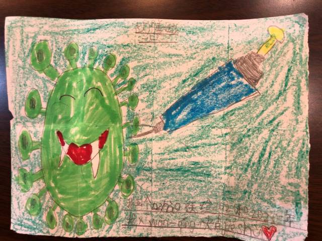 在沙面小学,孩子们还为采样人员画了画像。