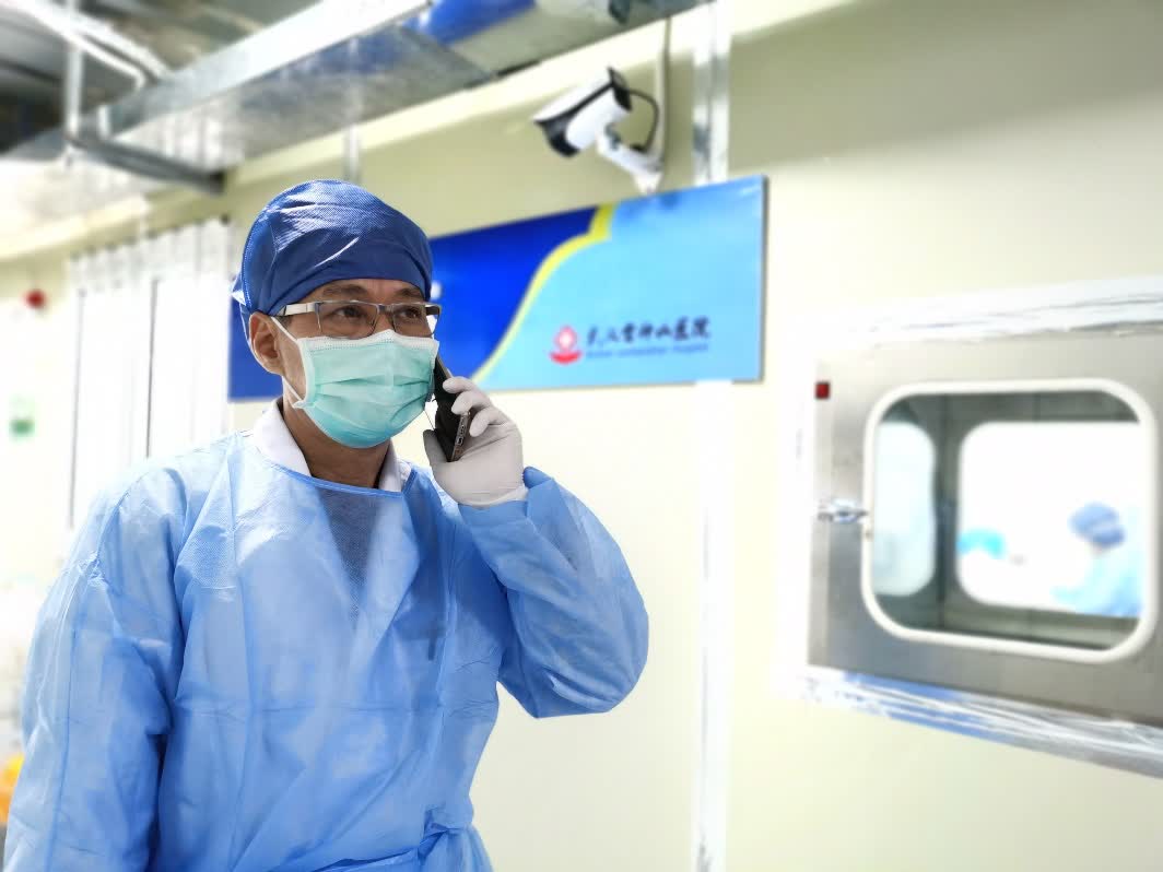张忠德与钟南山院士通话交流请教重症疑难病例救治方法。广东省中医院供图