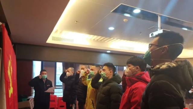 曾思涛和其他五名同志面向党旗庄严宣誓
