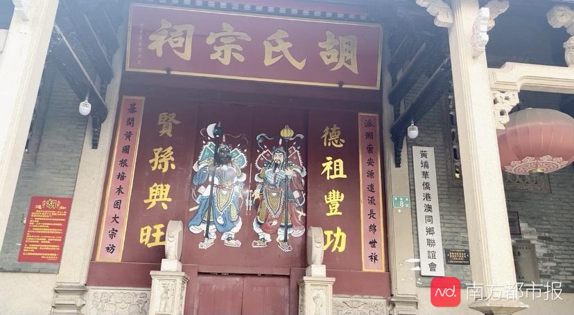 一行人走进胡氏宗祠的门口。据悉,胡氏宗祠是黄埔村规模最大,也是保存最完整的宗祠,到今天有200多年的历史。“来之前我查过一些资料,其实当年的黄埔村,还有不少村民离开家乡,如今定居在港澳呢。”卢黛韵介绍,有资料显示,如今旅居海外和港澳地区的黄埔村民超过千人。