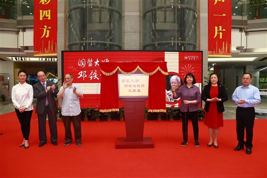 现场一幅长达十米的书法作品《中医与未来医学》吸引了诸多参观者。据了解,2004年,邓铁涛学术思想国际研讨会在广州举行,邓铁涛在开幕式上作“中国与未来医学”的特别演讲,全面阐述了“未来医学”的系列理论观点,描绘了中医学发展的理想愿景。2016年,年过百岁的邓老欣然挥毫,以墨抒情,分多个时段,书写报告全文。