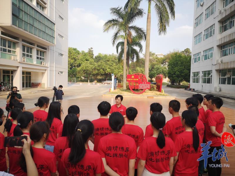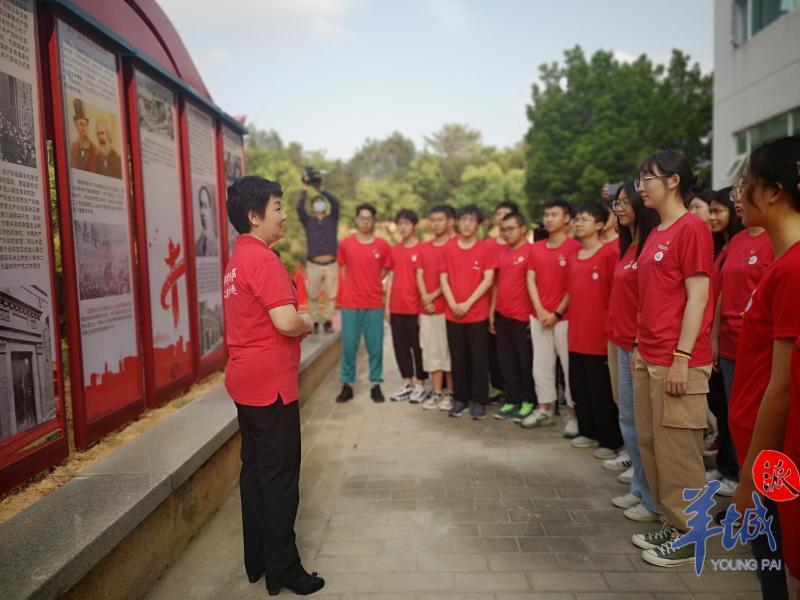 在现场,张建华从李大钊、陈望道、陈独秀等革命先驱者在十月革命后宣传推介马克思主义的故事说起,告诉同学们马克思主义具有强大的真理力量和实践力量;在“党史:党的一大到十九大”宣传栏前,张建华讲述了中国共产党成立纪念日确立的背景与历史,回顾了光荣辉煌、艰苦卓越的百年党史;张建华还以彭湃、周文雍、陈铁军等人在广州的红色故事,传递革命先辈们对党忠诚、有信仰、有担当的革命精神。