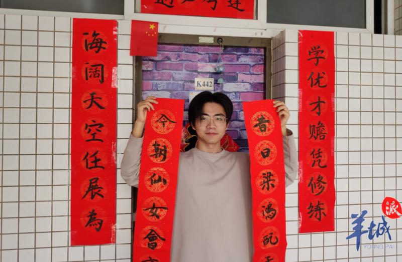第一次离家千里过春节,这个特殊的假期,王鑫退了回家的车票、自己手写了春联、为父母准备了一封家书、与同学们一起看春晚和拜年祭……他说:“毕业前,在广州,过一个不一样的春节,很有意义。”