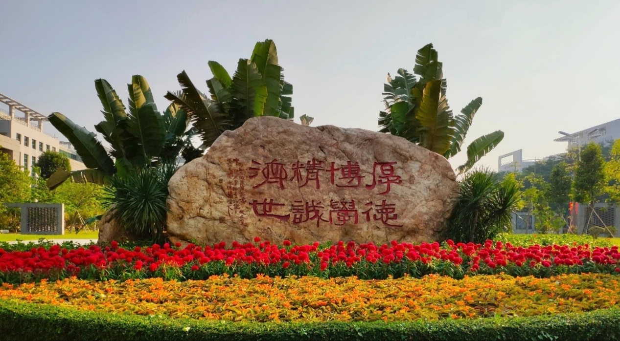 曾记否,校训石前立铭志,厚德博学,精诚济世;