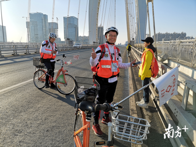 8日凌晨5时,天还没有亮,骑行队已经集结完毕。在检查自己的“救命装备”以及通讯系统正常后,他们就跟随着投放车,在自己的岗位守候待命。