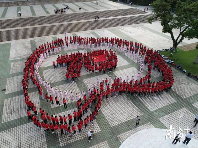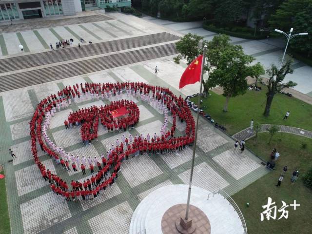 宣誓现场,来自港澳台和大陆的千余名医学生身着红色T恤,面向国旗,围绕成“心”形。在心形中央,港澳台学生排成的“70”队形,这是在表达对新中国成立70周年的祝福。学生们左手执国旗,高举右拳,宣誓医学生誓词:“我志愿献身医学,热爱祖国,忠于人民,恪守医德,尊师守纪,刻苦钻研,孜孜不倦,精益求精,全面发展。我决心竭尽全力除人类之病痛,助健康之完美,维护医术的圣洁和荣誉,救死扶伤,不辞艰辛,执着追求,为祖国医药卫生事业的发展和人类身心健康奋斗终生。”