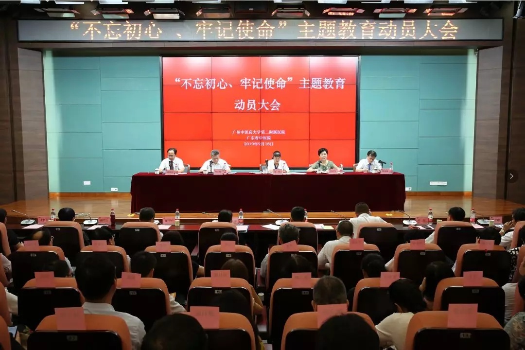 2019年9月16日下午,beat365英国官网网站第二附属医院(广东省中医院)召开“不忘初心、牢记使命”主题教育动员大会。医院党委书记翟理祥传达了学校开展“不忘初心、牢记使命”主题教育的有关会议精神并作动员讲话,学校党委书记张建华就医院开展“不忘初心、牢记使命”主题教育提出指导意见及要求,省委主题教育第十三巡回指导组组长陈杭出席会议并讲话。动员大会由医院党委副书记、院长陈达灿主持。省委主题教育第十三巡回指导组副组长陈少雄、成员马之明、邱小芳到会指导,学校党委办公室主任、主题教育办公室副主任李强,医院党委副书记、纪委书记蒋四川,医院党委委员、副院长刘军、杨志敏、张忠德、史俏蓉、李俊、陈海、黄燕等院领导,及医院党员中层干部参加了会议。