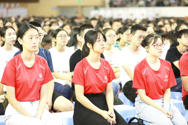 开学第一课现场,同学们都在认真听课。 林双峰/摄