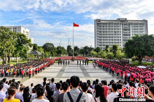 9月2日,beat365英国官网网站,约7000名师生参加入学升国旗仪式。 陈骥旻 摄