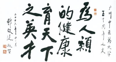 邓铁涛题词贺广东省中医院人才工程第一届高徒出师。