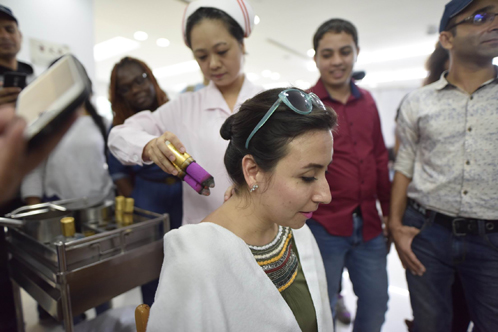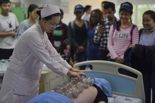 留学生体验传统中医疗法。信息时报记者梁钜聪 摄