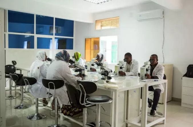 ▲2018年4月17日,在科摩罗大科摩罗岛,当地科研人员检查当地居民血液样本。新华社记者 吕帅 摄