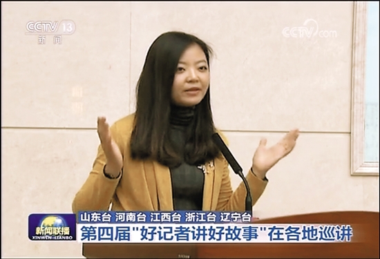 王倩在第四届“好记者讲好故事”全国巡讲活动中展现羊城晚报人的风采 (央视截图)