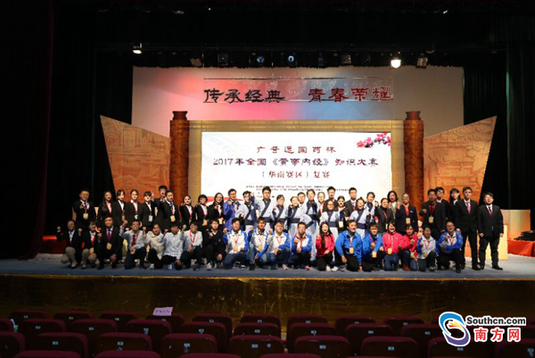 据悉,广誉远国药杯2017年全国《黄帝内经》知识大赛由由教育部、国家中医药管理局主管,教育部高等学校中医学类专业教学指导委员会、中华中医药学会、中国健康管理协会、全国中医药高等教育学会、全国青少年中医药文化传播与身心健康发展中心、中国教育网络电视台健康台主办,预设华北、华东、华中、华南、东北、西南、西北七大赛区,采用海选、分赛区复赛、全国决赛三级赛制。此次华南赛区最终遴选出的5支代表队,将参加于12月23-24日在北京举行的全国决赛。
