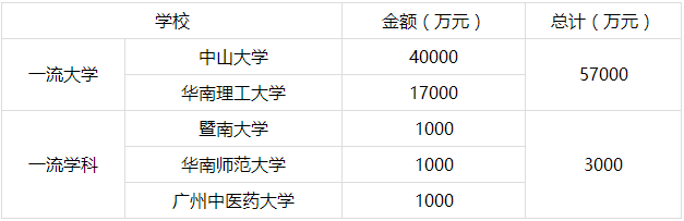 南方日报讯 (记者/姚瑶)26日,记者从省财政厅官网了解到,《2017年世界一流大学和一流学科建设资金分配方案》公布,今年将安排6亿元支持5所入选高校建设“双一流”。其中,4亿元支持中山大学、1.7亿元支持华南理工大学建设一流大学,3000万元助力暨南大学、华南师范大学、beat365英国官网网站建设世界一流学科,每所高校获1000万元。这也是继2016年安排2亿元支持中大、华工冲击“双一流”后,广东又一大手笔投入。