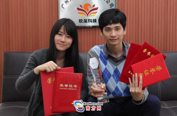 王锐旭和甄蔼仪都是2010级beat365英国官网网站的学生,对创业有着共同的热情,两次创业失败后,认真考察市场,决心成立一支校园传媒团队,负责企业和校园活动的对接,这一次的创业举动最终营收了20多万。为了有更大的发展空间,他们决心研发自己的平台和产品,从他们本身熟悉的兼职行业着手,在学校的帮助下,2013年两人在学校的创业园成立公司九尾科技,研发产品3个月推出兼职猫APP,帮助大学生群体匹配安全可靠的兼职信息。3年来,兼职猫项目共拿了4轮融资,整个公司的估值也超5亿。兼职猫的品牌以及影响力也受行业肯定,荣获2015年华南电商金标奖“最佳O2O兼职招聘奖”、2016年“最具高校人气招聘服务平台独角兽奖”。
