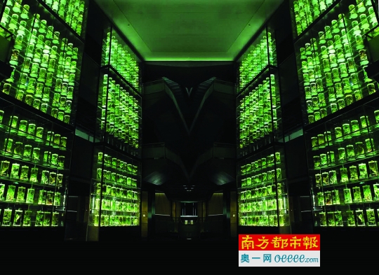 广东中医药博物馆内的中药标本墙,高14 .8米,令人震撼。校方供图