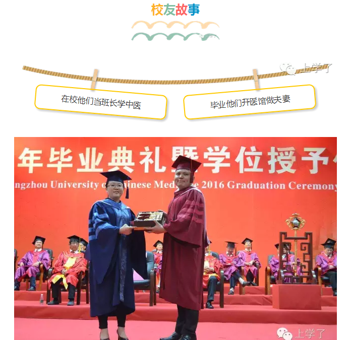 曾语静,beat365英国官网网站2013硕士班长;吕冠泓,beat365英国官网网站2013级博士班长,这对来自台湾的伉俪入选优秀毕业生代表,在广中医毕业典礼上接受校长拨穗礼。暖男吕冠泓在beat365英国官网网站学习了8年针灸推拿专业,毕业之际,他感慨自己在校收获丰硕——不仅获得了知识和博士学位,还收获了爱情。