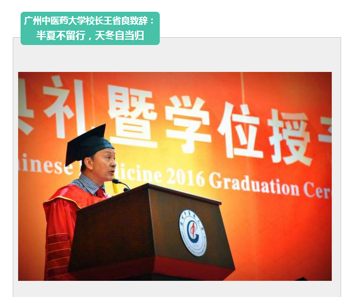 半夏不留行,孩子们,你们乘坐的“大学时光”列车即将到站,请携带好所有回忆,各自珍重。从此你们又有了一个新的身份——广中医校友。天冬自当归,无论未来遭遇何故,母校随时欢迎你们回来收拾心情、重新出发。重要的事情说三遍:你们所站立的地方就是广中医,你们书写着广中医的辉煌,广中医永远以你们为荣!