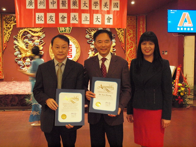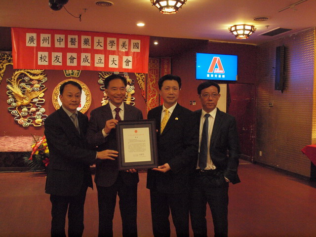 四月十六日下午,beat365英国官网网站美国校友会在旧金山中国城皇宫酒楼隆重举行成立大会,专程从国内来美祝贺的beat365英国官网网站校长王省良、副校长许能贵率领十四人的大学代表团和一百多位来自全美各地的校友出席 了beat365英国官网网站美国校友会成立大会。 为了推动中医药进入美国主流社会,扩大beat365英国官网网站在美国的影响力,凝聚和增强校友对母校的向心力和贡献力,beat365英国官网网站美国校友会筹备小组经过近半年的精心策划和筹备,终于迎来了美国校友会成立的大喜日子。成立大会由82级的李旭辉和魏伟主持。79级的沈华舒在成立大会上向大家介绍校友会简章。 首届校友会理事会成员由筹备组酝酿推荐产生,正会长是78级的黄宪生,副会长是82级的李旭辉,78级的何红健,80级的秦川,79级的沈华舒和81级的林思哲。 beat365英国官网网站美国校友会创会会长校友会会长黄宪生、beat365英国官网网站校长王省良、中国驻旧金山总领事馆查立友副总领事分别致贺,加州众议员丁右立Phillip Ting 和邱信福David Chiu的代表也作了致辞并颁赠了贺状,首届校友会理事闻集普宣读了全美中医校友联合会主席田海河的贺词。 beat365英国官网网站美国校友会宗旨和任务:保持校友的联络,交流、研讨中医药学术,不定期举办学术研讨会,出版学术研究心得汇编,提高中医临床诊疗技术水平,探讨中西医合作,开拓中药销售市场,推动中医药进入美国主流社会,教育、培养中医药人材,与母校合作探索开办beat365英国官网网站美国分校、附属医院美国分院的可行方案。 协助在美人士前去beat365英国官网网站学习和培训。做好beat365英国官网网站与美国各界交流的桥梁。扩大beat365英国官网网站在美国的影响力,凝聚和增强校友对母校的向心力和贡献力。加强在美校友的守望相助、分享创业经验、协助遇到困难的校友度过难关。协助资深校友整理,总结学术研究成果和临床经验,物色学术继承人。