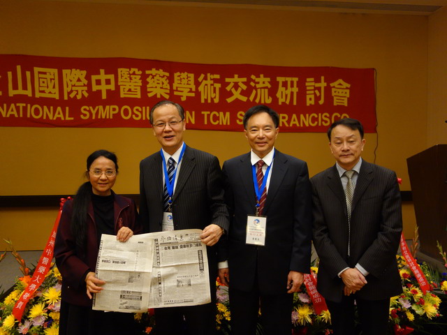 左起云南中医药学会会长郑进、美国中医公会会长黄宪生、