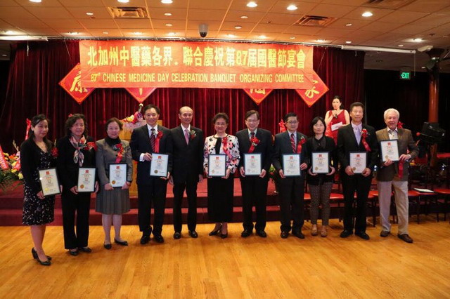 旧金山当地时间4月17日,杏林春风再度吹拂旧金山, 旧金山国际中医药学术交流研讨会暨第八十七届国医节庆典活动分别在旧金山市中心万豪酒店和旧金山华埠康年大酒家隆重举行,可谓神奇中医走俏大洋彼岸,中华文明得以全球传承。 旧金山国际中医药学术交流研讨会是国医节的重点活动之一,由美国中医公会、加州中国医学研究院主办,中国云南省中医学会、beat365英国官网网站、华夏中医药发展基金会、中国卫生与健康促进会国际交流处协办,沈华舒医师主持了研讨会。 研讨会的主题为:回顾、继承、展望、创新、共绘世界中医药发展新蓝图。来自中美两国的中医药专家、学者、从业员近300人出席了研讨会。黄宪生会长致开幕词表示,旧金山国际中医药学术交流研讨会从 2005 年开始已连续成功举办了 11 年,成为加州一年一度的中医药学术盛会,并在国际上中医界有越来越高的影响和声誉。会议对促进加州中医界学术水平的提高,对促进国际中医药的学术交流和发展都有很好作用。今年的会议,将有十几位中医药专家向大家介绍自己宝贵的临床经验、科研成果和探讨中医药在世界发展的策略。一定会使每个与会代表受益良多。 云南中医药学会会长郑进演讲“兰茂医学与云南中医学”、beat365英国官网网站副校长许能贵教授演讲“针灸医学发展的现状及展望”。 加州众议员邱信福代表陈冠雄向主协办方代表颁发贺状,美国国会议员赵美心莅临研讨会介绍联邦针灸福利法案,呼吁各方大力支持。 由美国中医公会执行主办、美国中药联商会、美洲中医学院、加州中医药大学、美洲中国文化医药大学,国际医药大学,河洛医科大学共同主办的北加州中医药各界联合庆祝第八十七届国医节晚宴在旧金山华埠康年大酒家隆重举行。 中国驻旧金山总领事罗林泉出席并发表讲话,国医节筹委会执行主席、美国中医公会会长黄宪生以国医节主题:“继承发扬国医节精神、捍卫拓展中医药事业”发表演讲。
