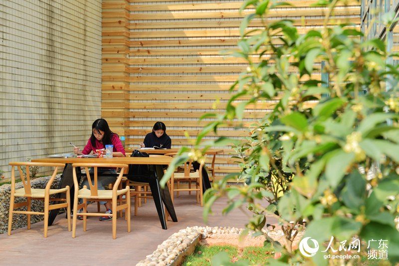 新装修的图书馆特辟了一个安静的咖啡角落。