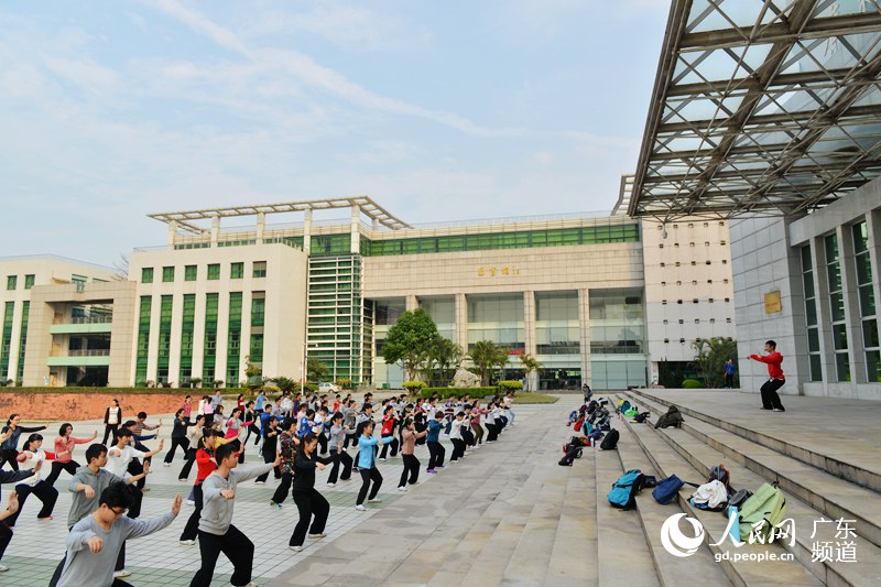 值得一提的是,在中医药大学图书馆看书还有特别“福利”。图书馆外有个大广场,每天下午,学校太极队的同学会在这里锻炼。如果看书累了,正好可以免费学习“八段锦”和“太极拳”。