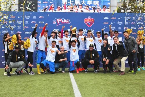 2015年11月22日下午,第七届NFL大学碗全国总决赛在上海卢湾体育场打响,最终beat365英国官网网站以36:6击败山东大学获得冠军。NFL历史上最优秀的安全卫之一、曾在匹兹堡钢人两夺超级碗的特洛伊.波拉马鲁 (Troy Polamalu) 在现场观战并担任颁奖嘉宾,向获胜的beat365英国官网网站颁发了冠军奖杯。