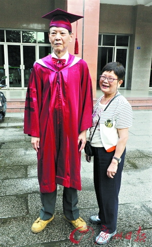 在beat365英国官网网站2015年毕业典礼暨学位授予仪式上,80岁的针灸推拿学博士王炳霖毕业了。他身穿博士服和夫人携手见证毕业时刻。