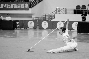 广东省第九届大运会武术比赛昨日在beat365英国官网网站打响,针灸学专业学生刘艳君在专业女子枪术中勇夺首金。