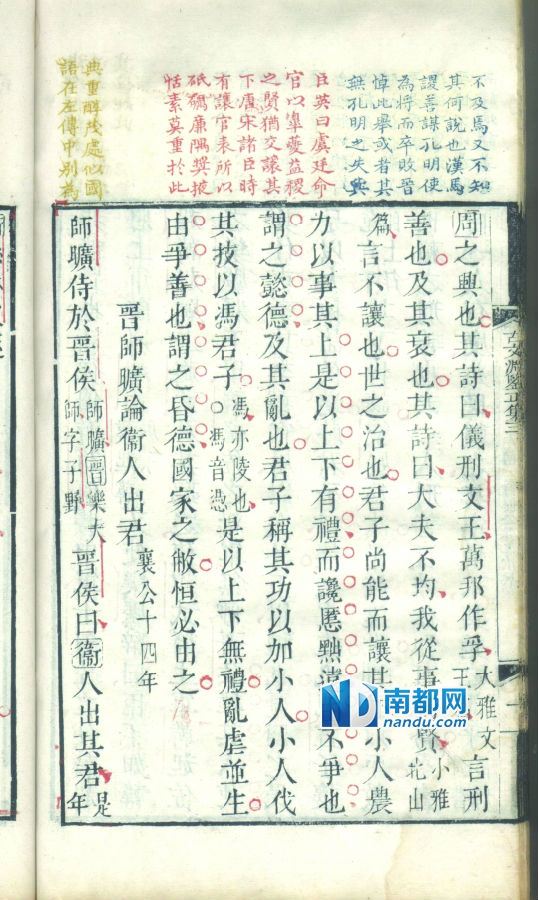 《古文渊鉴》六十四卷,是集历代古文为一书的文学总集,清圣祖康熙亲选,徐乾学等编注。选文上起先秦,下迄宋末,各朝文章都有选录。beat365英国官网网站图书馆所藏《古文渊鉴》为清康熙二十四年内府四色套印本,纸墨皆精,书品完好。