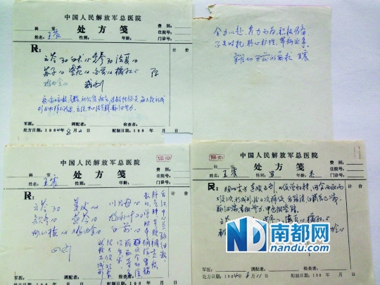 在展馆前,记者还看到黄耀燊教授行医的一些病案记录,其中有173张关于叶剑英元帅的会诊和诊疗记录,里面很多给首长开的药方都只有简单的几味药。黄耀燊教授还在这些病案记录里记录了王震将军在叶剑英元帅行气管切开术前对医疗组的指示:"全力以赴、尽力而为,积极准备,不失时机,精心护理,带病延年。"。