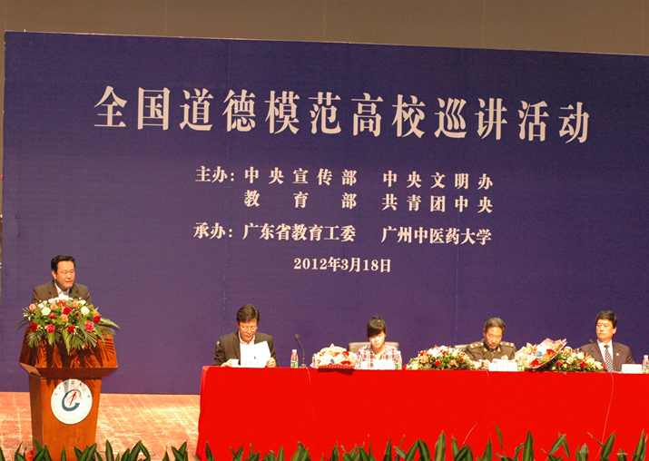 3月18日,由中央宣传部、中央文明办、教育部、共青团中央主办,广东省委宣传部、省文明办、省教育工委、共青团省委、beat365英国官网网站承办的"全国道德模范高校巡讲"活动在beat365官网大学城校区大会堂举行。中央文明办、教育部、广东省教育工委的领导和嘉宾出席,beat365官网党委副书记陈英华主持本次活动。