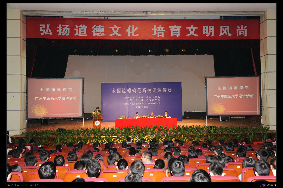 学校中层干部、学生政治辅导员、思想政治理论课教师以及2千余名学生聆听了先进事迹报告。会后,3位道德模范在广东省教育厅思政处长袁本新、校党委书记黄斌、党委副书记陈英华等的陪同下参观了广东中医药博物馆。