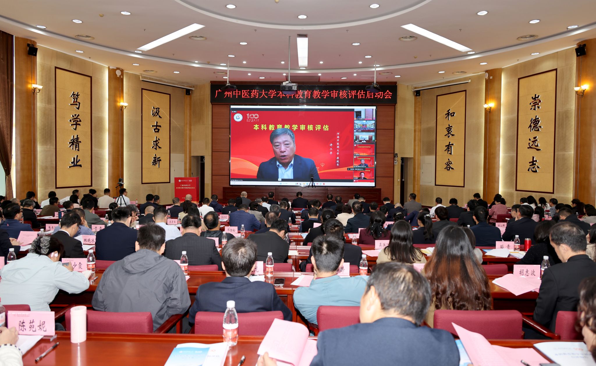 受学校党委副书记、校长王伟的委托,副校长刘中秋以《百年岐黄 逐梦一流 培养德业双修传承创新中医药精英人才》为题,汇报了学校发展和本科教育教学情况。他表示,百年来,学校传承“上医医国,先觉觉民”家国情怀,秉持“厚德博学,精诚济世”的校训精神,筑牢了本科教育核心地位,秉承“人才培养为本,本科教育是根”的指导思想,坚持“融古铸今、继往开来、扎根南粤、放眼寰球”的办学方针,通过“重临床、强临床、用经典、精中医、融西医、研学术、济全球”等举措,形成了“明德精业、医融中西”的本科教育理念。他指出,学校坚决贯彻落实习近平总书记对教育工作的重要指示批示精神,紧紧围绕立德树人根本任务,全面推进教育、科技、人才一体化建设,坚持“人才强校”战略,打造一流师资队伍,为国家培养了中医药专门人才18万人。坚持一流学科引领,实行学科-学位-专业一体化建设,推进学校高质量内涵式发展,以“再造一个新广中医”的决心,着力谋划新百年学校事业高质量发展,加快建设“中国特色、世界水平”的一流大学。