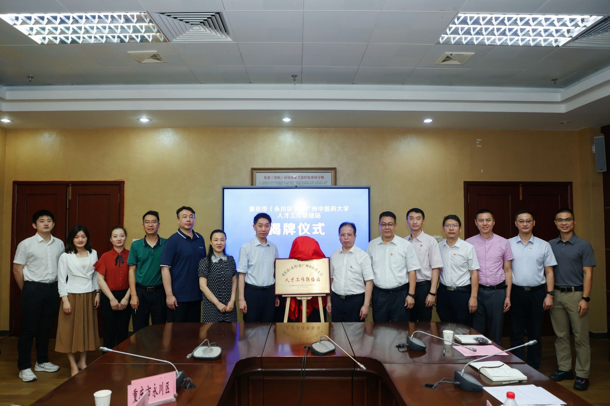 欢迎仪式后,刘中秋、李世红共同为“重庆市(永川区)驻beat365英国官网网站人才工作联络站”进行揭牌。学校研究生院、永川区人社局负责人随后签订《共建beat365英国官网网站研究生(本科)社会实践永川基地协议书》。