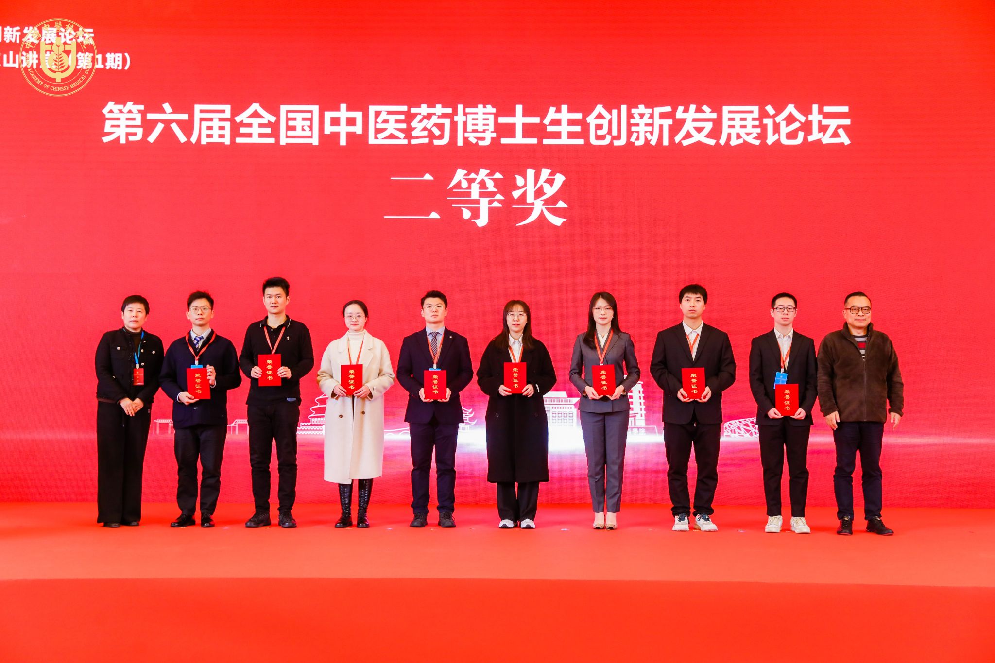 倪世豪(左二)获第六届全国中医药博士生创新发展论坛二等奖