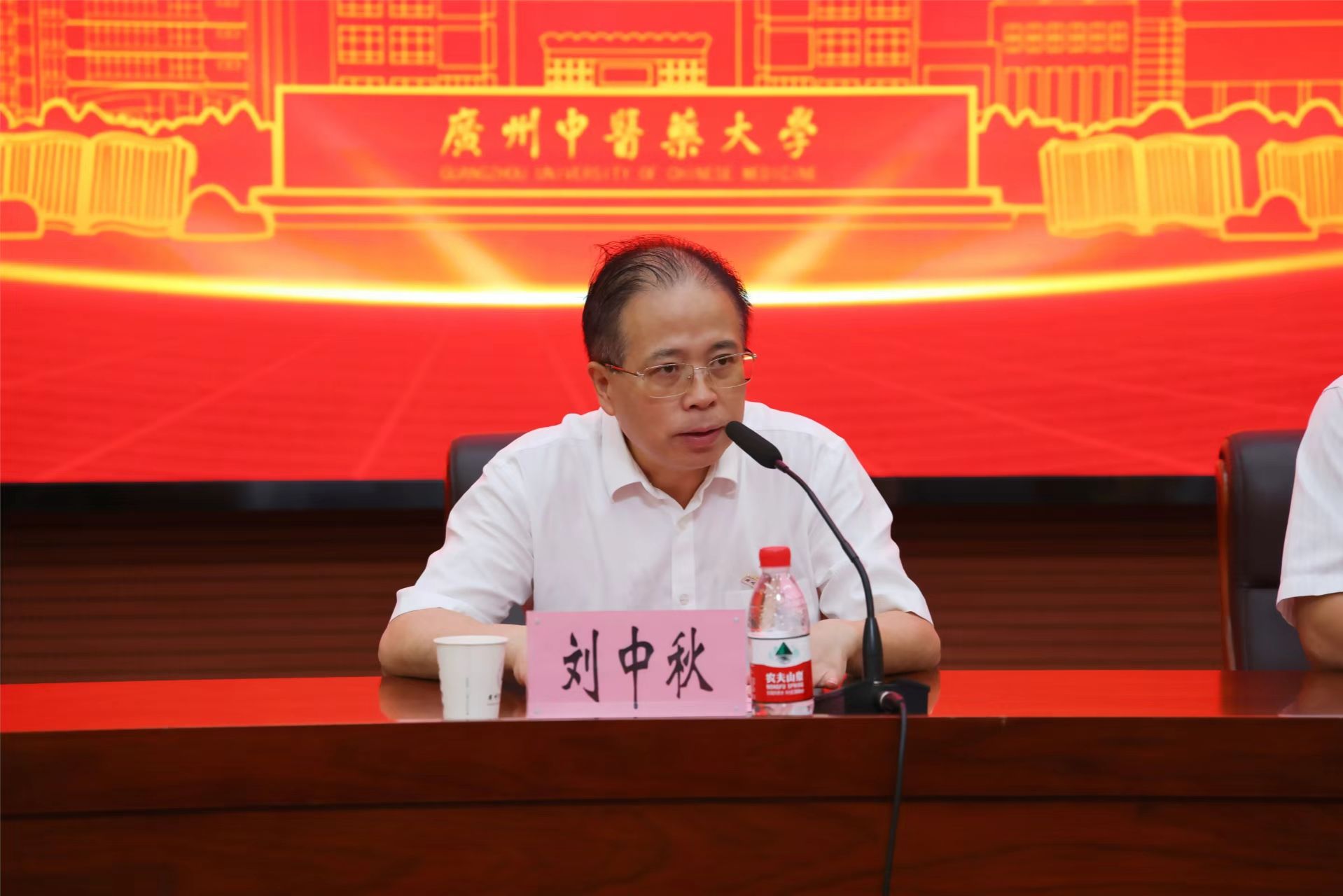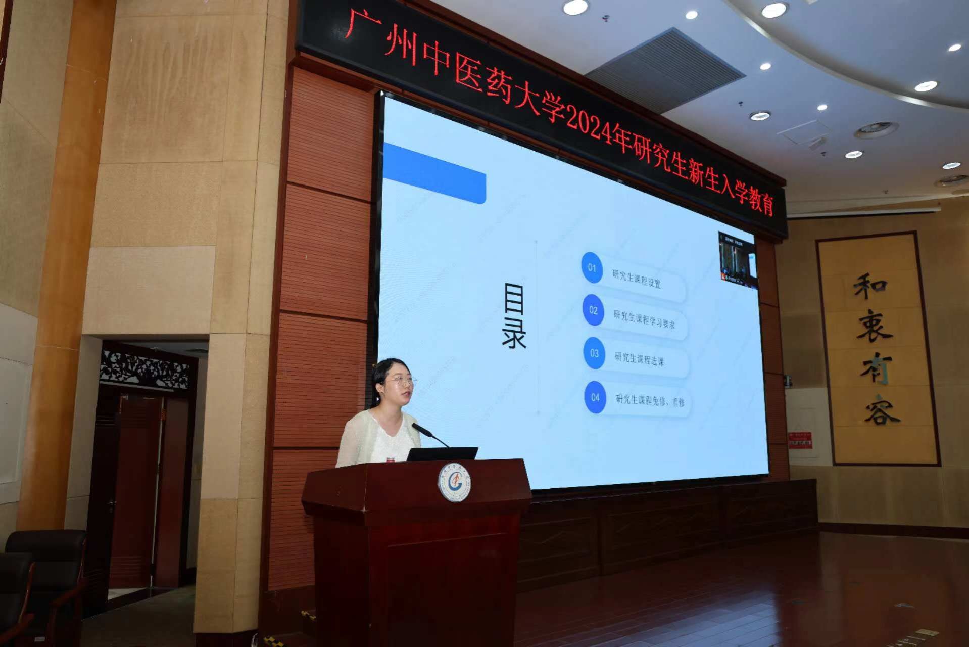 副校长刘中秋对2024级研究生新生的到来表示热烈欢迎。他强调,作为“双一流”广中医的学生,一定要有家国情怀、高尚品格和仁心仁术。同学们要牢记初心和使命,树立正确的三观和奋斗目标,做中医药守正创新的接班人和人民健康的守护者。针对新生未来的学习生活,他提出三点希望:一要有信仰、有情怀、有担当,争做新时代有作为的广中医研究生;二要学知识、提素质、强本领,努力成为德才兼备、全面发展的优秀人才;三要能吃苦、肯钻研、勇创新,在中医药领域不断探索前行,为中医药的传承与创新贡献智慧和力量。