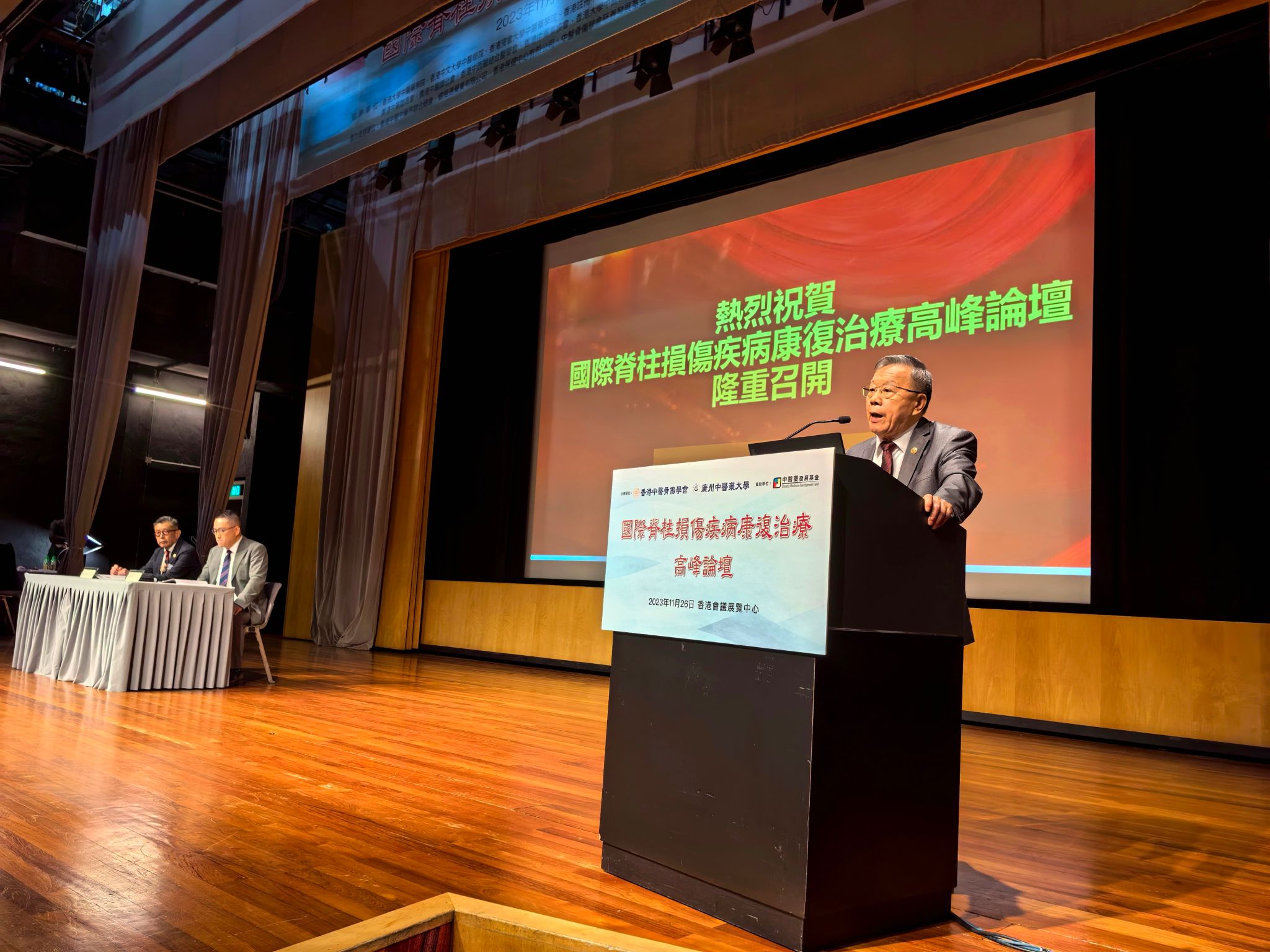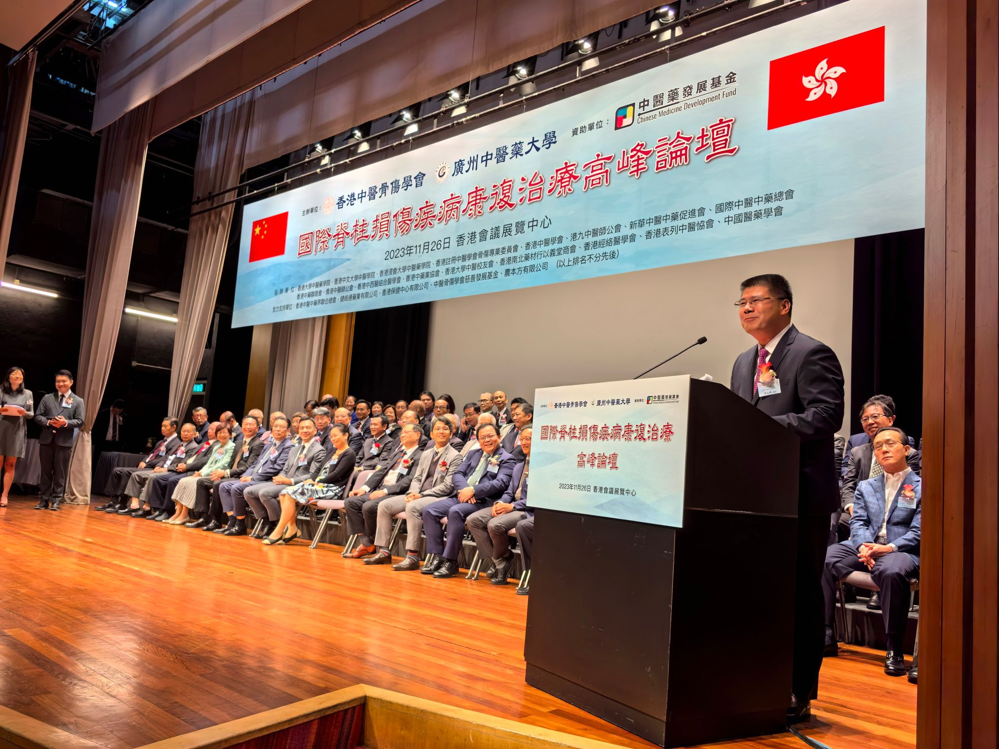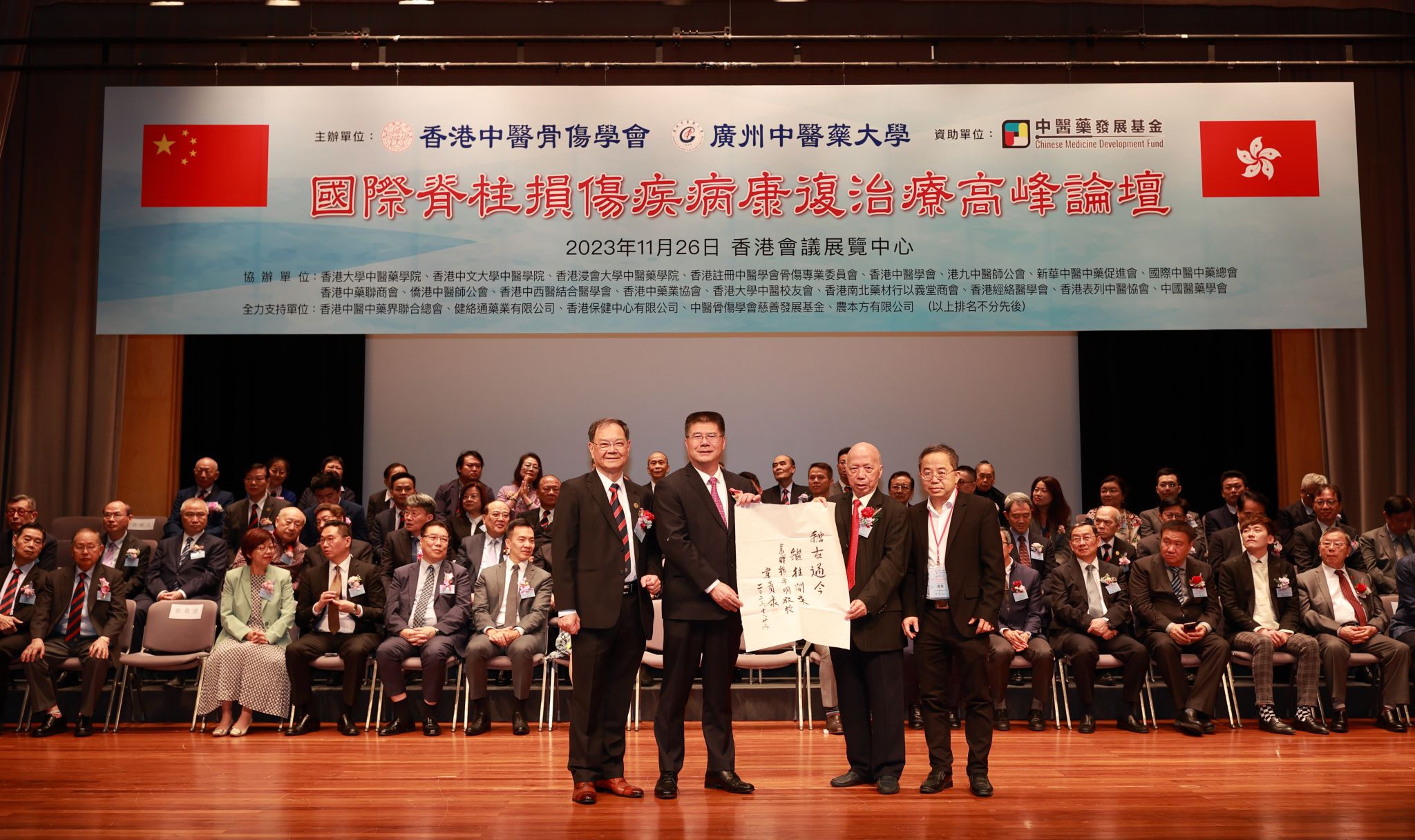 11月26日,beat365英国官网网站与香港中医骨伤学会在香港会议展览中心共同主办“国际脊柱损伤疾病康复治疗高峰论坛”。beat365英国官网网站党委书记陈文锋、香港中医骨伤学会会长杨卓明在开幕式上致辞。会议协办单位包括香港大学、香港中文大学、香港浸会大学等多所香港主要高校以及香港注册中医学会、香港中医学会、港九中医师公会等多个香港主要中医药团体。