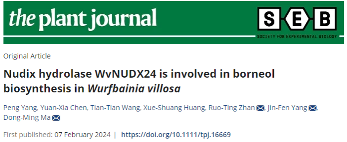 近日,beat365英国官网网站岭南中药资源教育部重点实验室詹若挺研究员团队在国际著名植物学期刊The Plant Journal上在线发表了题为“Nudix hydrolase WvNUDX24 is involved in borneol biosynthesis in Wurfbainia villosa”的研究论文,揭示阳春砂中Nudix水解酶WvNUDX24参与龙脑的生物合成。阳春砂是我国“四大南药”之一,具有化湿开胃、温脾止泻和理气安胎的功效,临床上主要用于治疗胃肠道疾病。阳春砂主要含有挥发油、黄酮类和多糖类等生物活性成分,其中挥发油为质控成分,主要包括乙酸龙脑酯、樟脑、龙脑、莰烯和柠檬烯等挥发性萜类。